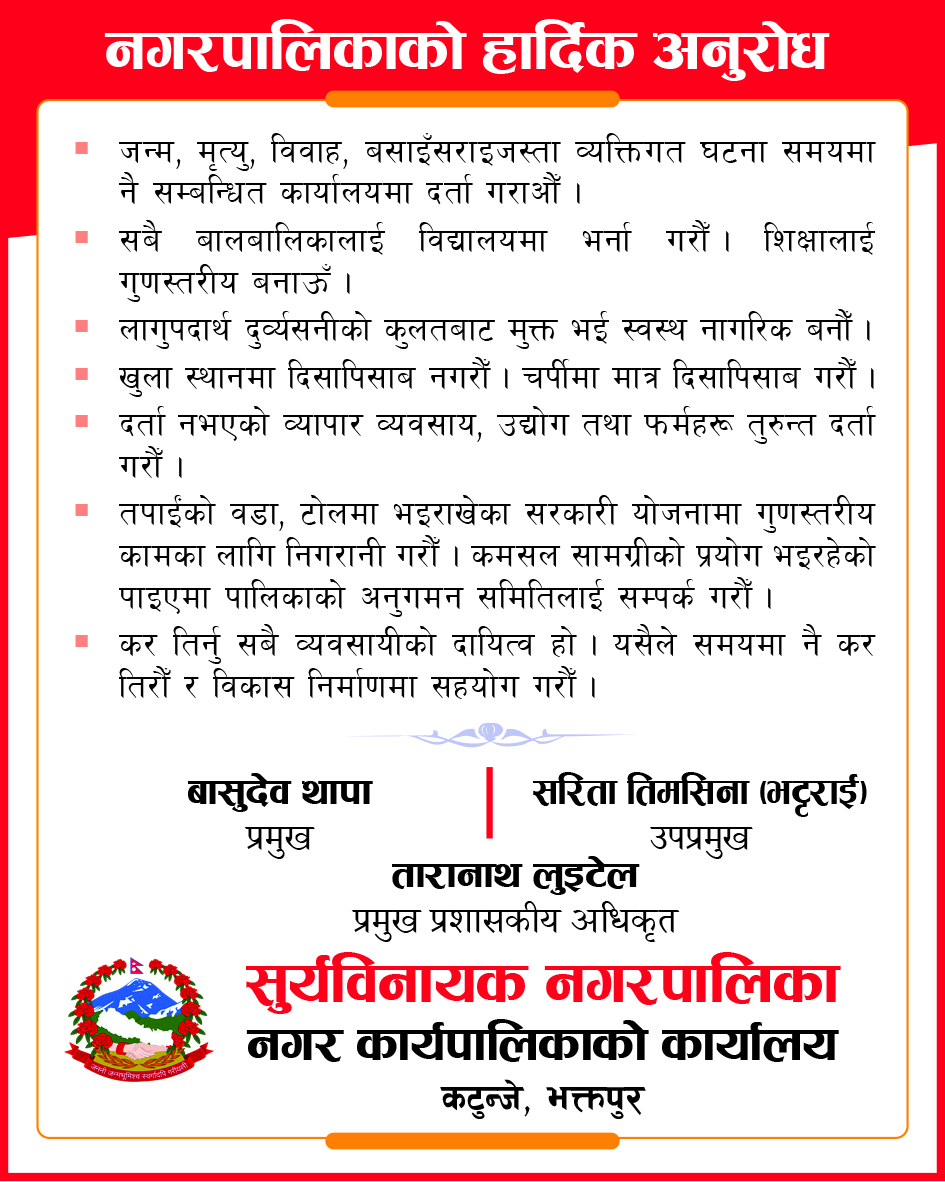 भक्तपुर । चक्रपाणि स्मारक प्रतिष्ठानले साहित्यकार चक्रपाणि चालिसेको १४३ औं जन्मजयन्ती मनाएको छ । सूर्यविनायक-…
