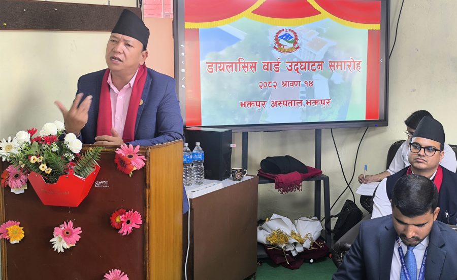 भक्तपुर । भक्तपुर-१ दुधपाटीस्थित प्रादेशिक अस्पताल भक्तपुर अस्पतालमा डायलासिस सेवा उद्घाटन भएको छ । मिर्गौलाले काम नगर्ने बिरामीका लागि अत्यावश्यक यो डायलासिस सेवा बुधबार बागमती प्रदेश सरकारका स्वास्थ्य मन्त्री किरण थापामगरले उद्घाटन गरेका छन् ।