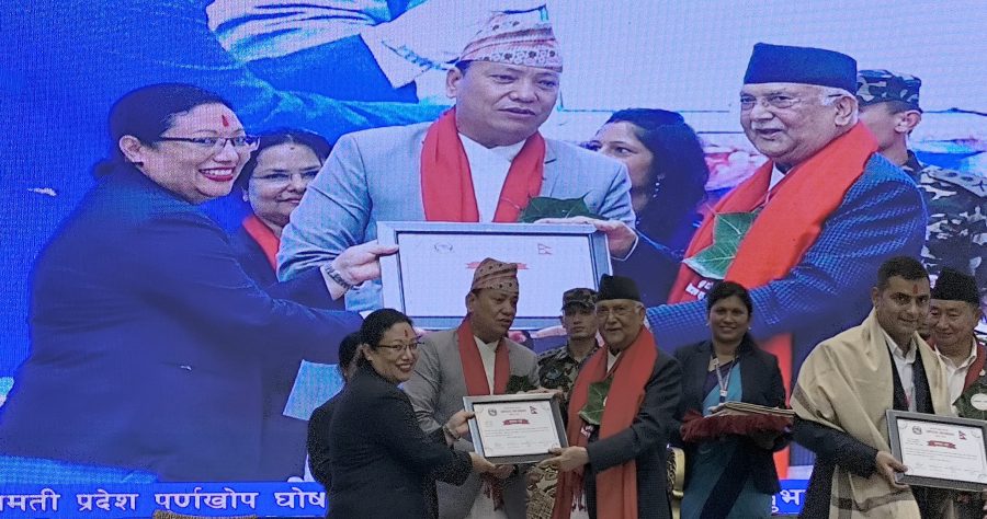 कार्यक्रममा प्रधानमन्त्री ओलीले खोप समितिको प्रमाणपत्र प्रदेशका स्वास्थ्यमन्त्री किरण थापा र सचिव डा सुमित्रा गौतमलाई हस्तान्तरण गरे ।