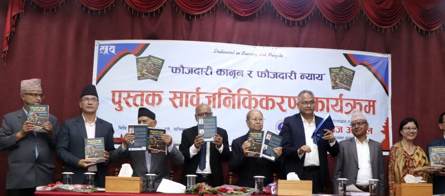 भक्तपुर । भक्तपुर नगरपालिकाद्वारा सञ्चालित ख्वप कलेज अफ लको आयोजनामा वरिष्ठ अधिवक्ता प्रा.डा. रजितभक्त प्रधानाङ्ग र सहन्यायाधिवक्ता सोमकान्ता भण्डारीको संयुक्त लेखनमा प्रकाशित पुस्तक ‘फौजदारी कानुन र फौजदारी न्याय’ शनिबार सार्वजनिक गरिएको छ।