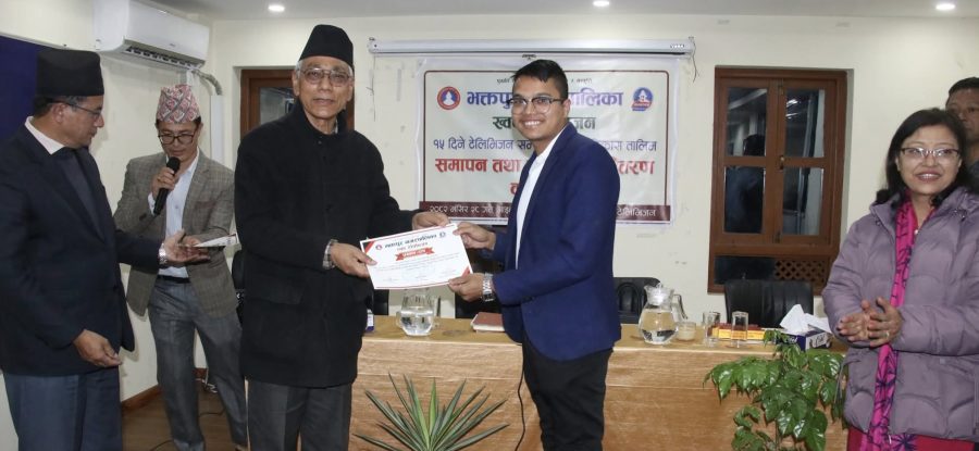 मंसिर १२ देखि २७ गतेसम्म सञ्चालन भएको १५ दिने तालिमका प्रशिक्षकलाई धन्यवाद पत्र र मायाको चिनो प्रदान गरिएको थियो भने २५ जना प्रशिक्षार्थीले प्रमाणपत्र पाए ।