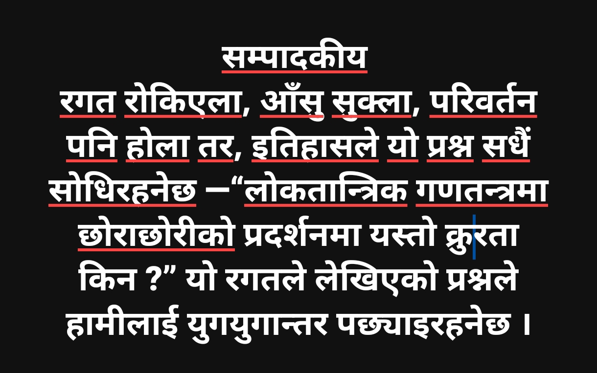 सम्पादकीय : “रगतले लेखिएको प्रश्न”