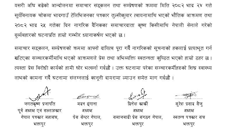 आक्रमण र दुर्ब्यवहारप्रति भक्तपुरका पत्रकार संगठनहरुको ध्यानाकर्षण