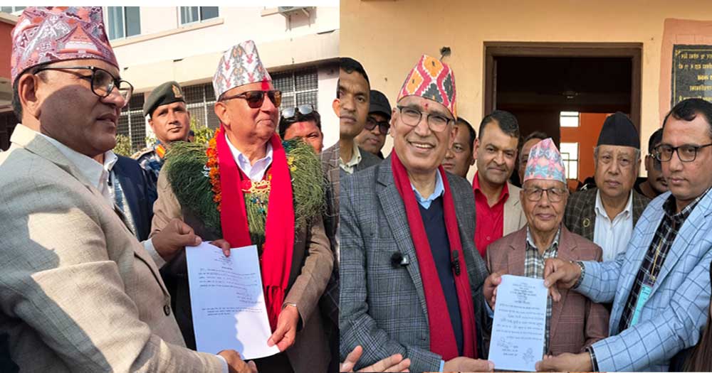 एमालेबाट शंकर पोखरेल र विष्णु पौडेलले गरे मनोनयन दर्ता