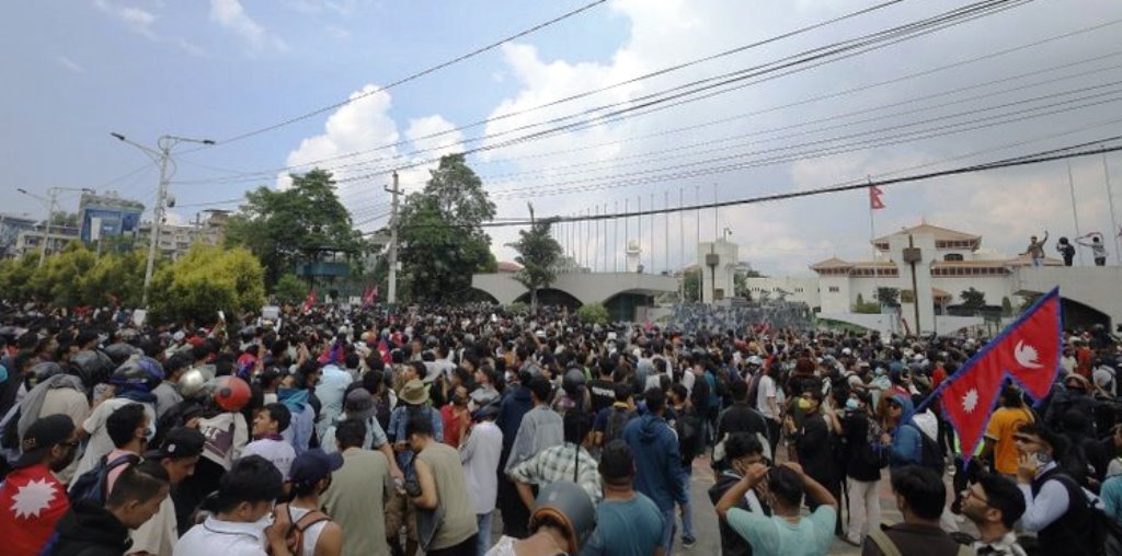 काठमाडौँ । स्थानीय प्रशासनले जारी गरेको कर्फ्यू आदेशलाई अवज्ञा गर्दै बाराको सिमरामा युवाहरूले विरोध प्रदर्शनजारी राखेका छन्। नेकपा एमालेका नेता–कार्यकर्ता र जेनजी युवाबीच बढ्दो तनावका कारण सम्भावित जोखिमलाई मध्यनजर गर्दै जिल्ला प्रशासन कार्यालय बाराले बुधबार दिउँसो १२:३० बजेदेखि राति ८ बजेसम्म कर्फ्यू आदेश जारी गरेको थियो। आदेश अनुसार गण्डक नहरदेखि पथलैया सडकखण्डसम्म दायाँ–बायाँ ५ सय […]