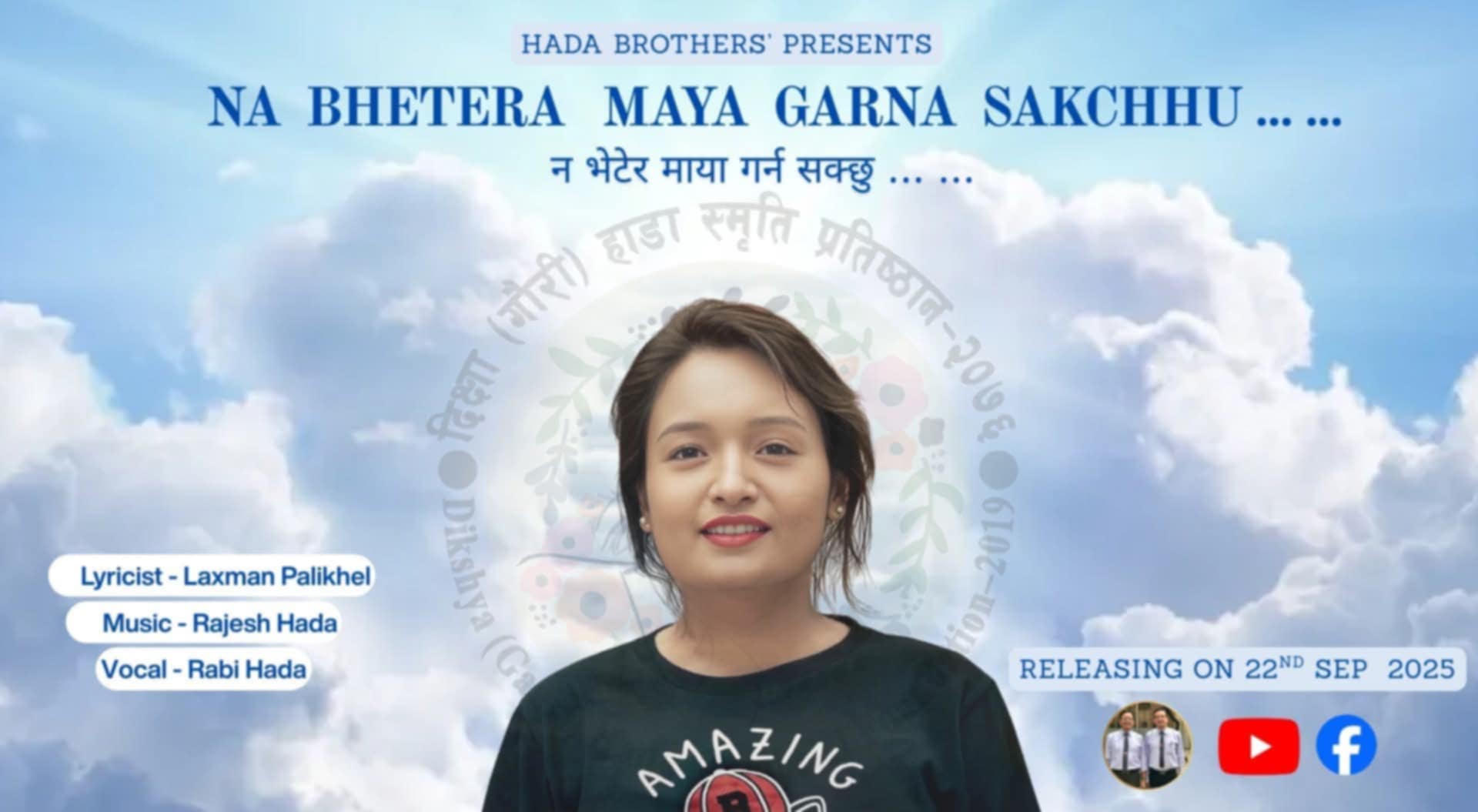 भक्तपुर । दिक्षा गौरी हाडा स्मृति दिवसको अवसरमा भक्तपुरमा स्व. दिक्षा हाडाको सम्झनामा नयाँ गीत “न भेटेर माया गर्न सक्छु, न भुलेर माया मार्न सक्छु” लोकार्पण गरियो। हाडा ब्रदर्सको प्रस्तुतीमा कलाकार मदनकृष्ण श्रेष्ठले गीत सार्वजनिक गरे। गायक लक्ष्मण पलिखेलको शब्द, दिवंगत दिक्षाका पिता राजेश हाडाको संगीत र रवि हाडाको स्वर रहेको गीतलाई गोपाल रसाइलीले संगीत […]
